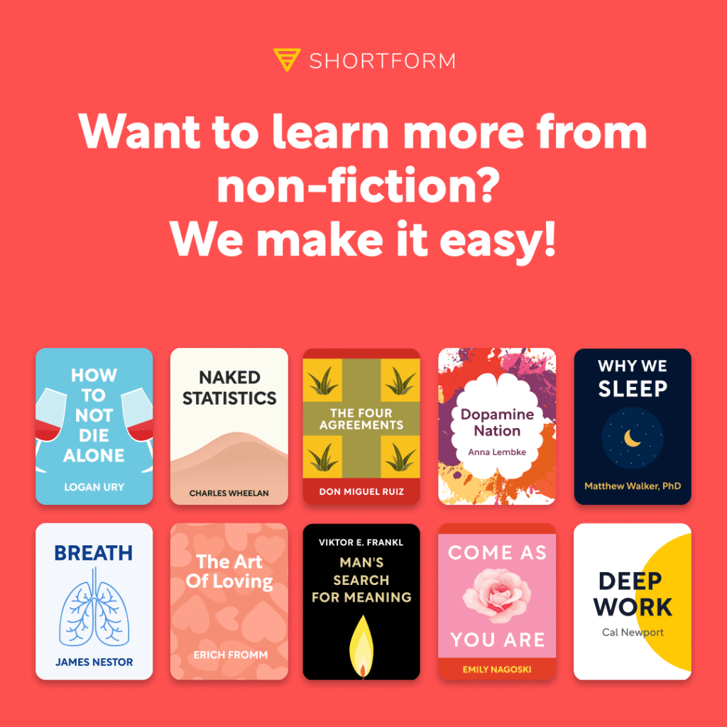 Of course, it is always best to read the book itself – and Shortform encourage this – but these notes allow you to find key points again afterwards, or allow you to quickly refresh your understanding if you haven’t read it in a while. OR you could just read the summary and never touch the book – it’s up to you! Either way, you won’t find a better, more user-friendly summary of non-fiction books.